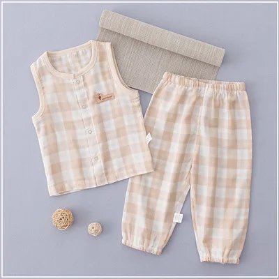Kids Clothing Sets Casual Plaid Sleeveless Vest Pants Anti-mosquito Clothes Newborn Baby Boys Girls