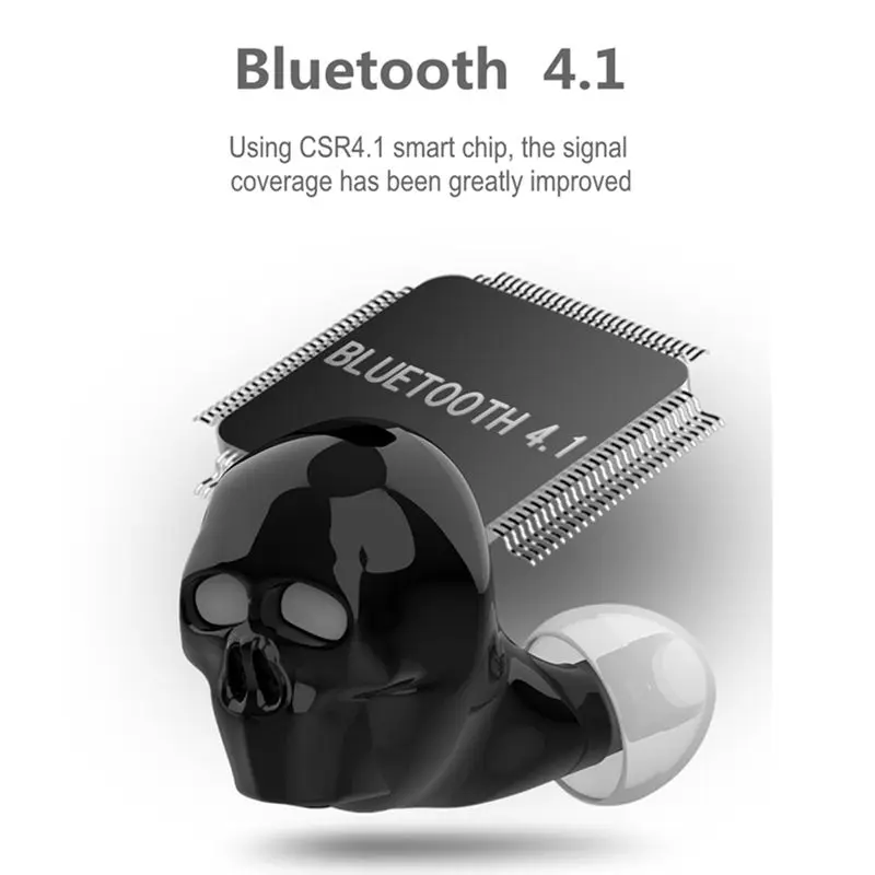 HOT Sale New Skull Bone Bluetooth Earphone With Microphone Noise Cancelling Hi-Fi Handsfree Bass Stereo Mini