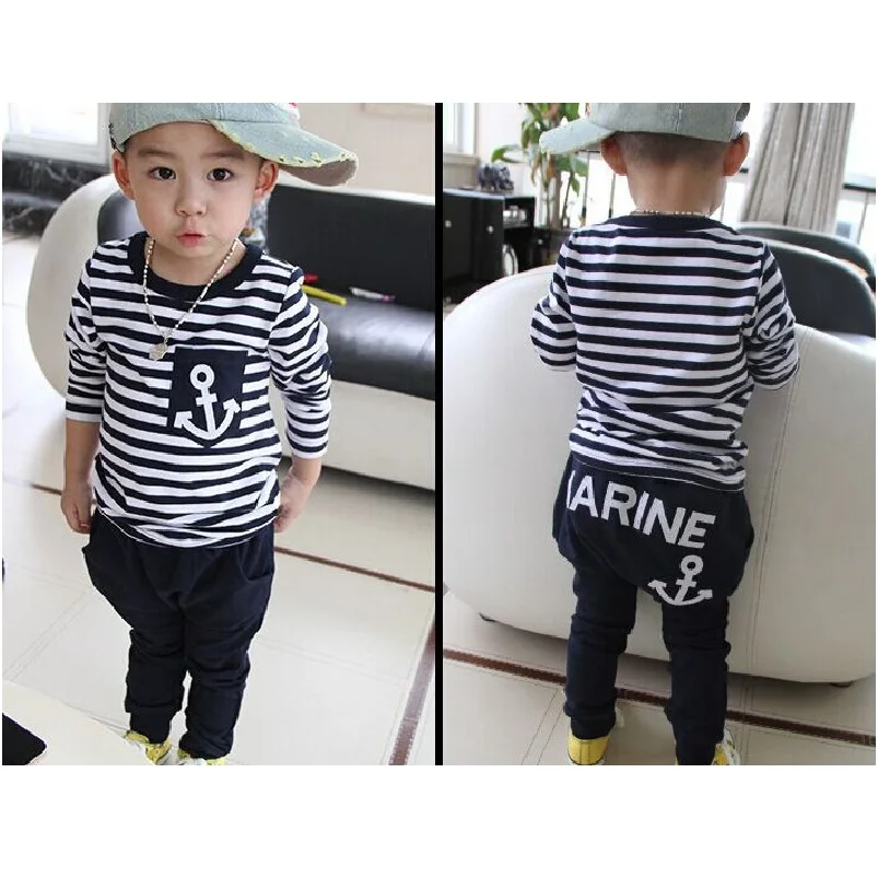 Marine Navy Sailor Boys Sport Suits Children Clothes Set for boy Kids Tracksuit T-Shirts Trouser Se